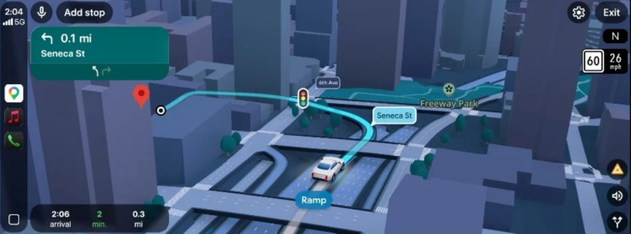 Оновлення Immersive Navigation додає більш детальну навігацію. Карта відображає 3D-будівлі, дороги, переходи, світлофори та дорожні знаки, що допомагає краще орієнтуватися під час руху. Також покращено голосові підказки — вони стали більш зрозумілими і схожими на підказки від реального співрозмовника.