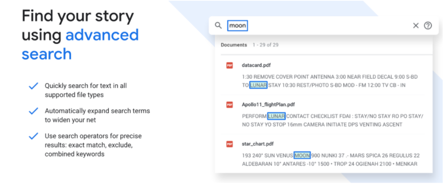 За словами компанії, нові інструменти допоможуть під час журналістських розслідувань та інших проектів, які вимагають ретельного аналізу величезних масивів даних. Основним продуктом Journalist Studio є інструмент Pinpoint — він дозволяє репортерам і редакторам легше переглядати документи, зображення і аудіофайли. Pinpoint виділяє імена і місця розташування, а також ключові фрази, які найбільш часто зустрічаються в пакетах документів.