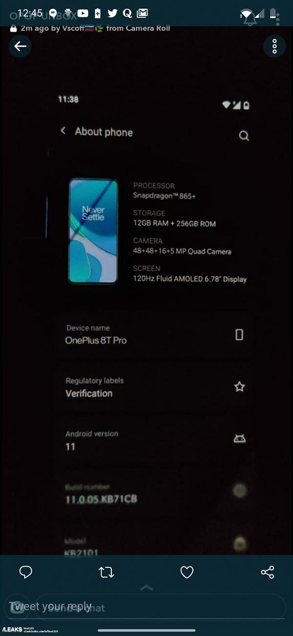 OnePlus 8T Pro також отримає 6,78-дюймовий дисплей Fluid AMOLED з частотою оновлення 120 Гц. Під капотом телефона буде встановлений процесор Snapdragon 865+ в поєднанні з 12 Гб ОЗУ і 256 Гб ПЗУ.
