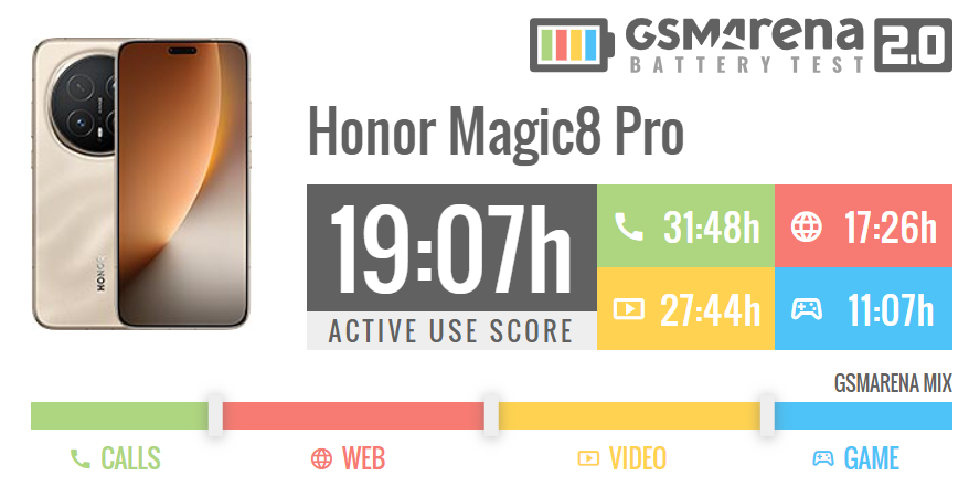 Honor продовжує ділитися результатами тестування свого Magic8 Pro, і перші показники виглядають дуже оптимістично. Модель для Європи отримала акумулятор на 6270 мАг — це менше, ніж у версії для Китаю (7200 мАг), але смартфон все ж показав вражаючий час роботи.