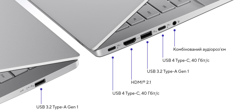 Набір портів виділяє модель серед конкурентів, які переходять виключно на USB-C. Пристрій оснащено двома портами USB4 (до 40 Гбіт/с з підтримкою DisplayPort), двома класичними USB 3.2 Type-A, повнорозмірним HDMI 2.1 та аудіороз’ємом 3.5 мм. Така конфігурація усуває потребу в перехідниках для підключення периферії.