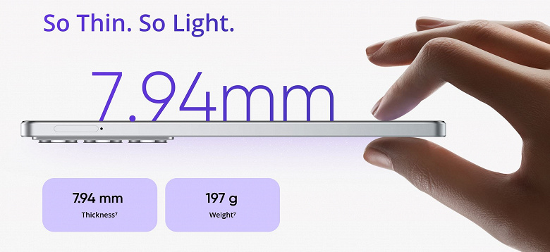 При такій великій батареї телефон залишається тонким – товщина всього 7,94 мм, а вага 197 грамів. Основна камера має 32-мегапіксельний сенсор, фронтальна – 8 Мп.