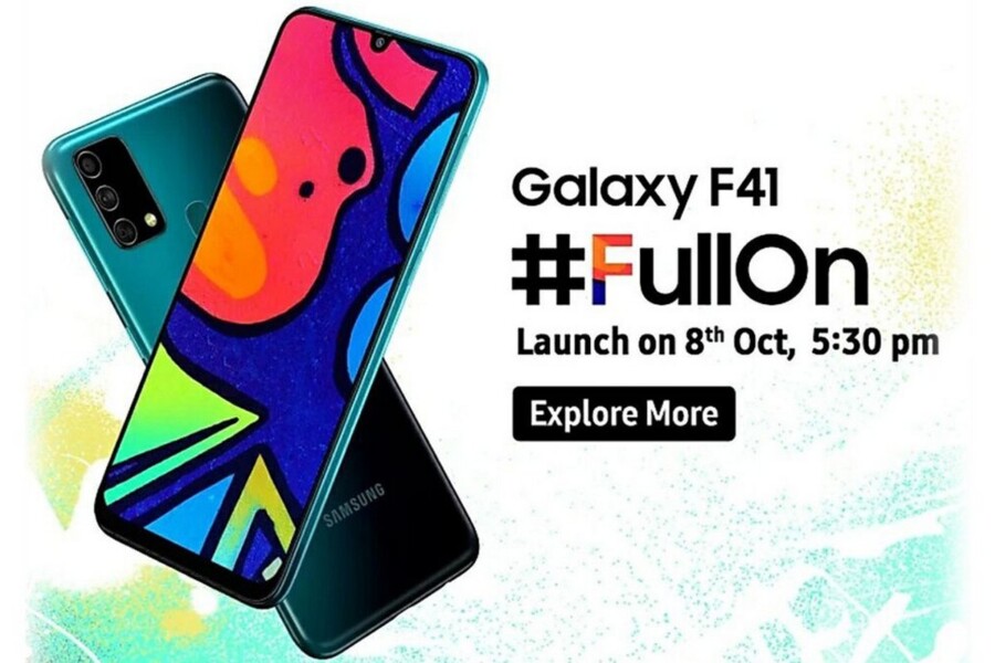 Відповідно до опису, Galaxy F41 отримає дисплей S-AMOLED з вирізом Infinity-U, батарею ємністю 6000 мАг, три камери на задній панелі з основним модулем на 64 Мп і сканер відбитків пальців.