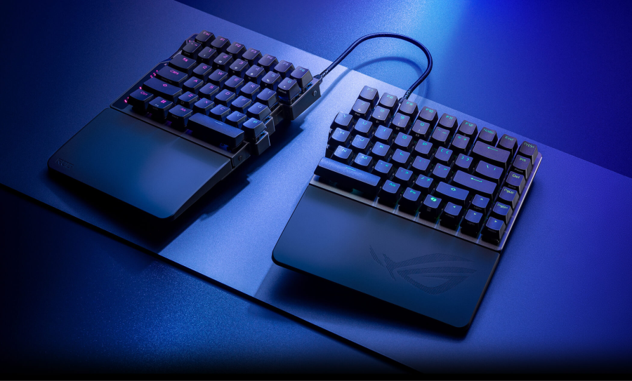 Для тих, хто не боїться експериментів, справжнім відкриттям стане ROG Falcata – унікальна спліт-клавіатура із магнітними перемикачами ROG HFX V2 з ефектом Холла. Ця ігрова клавіатура максимально адаптується до вимог та стилю кожного користувача, дозволяючи за потреби використовувати окремо тільки лівий модуль клавіатури, щоб звільнити місце на робочому столі для вільних рухів мишкою.