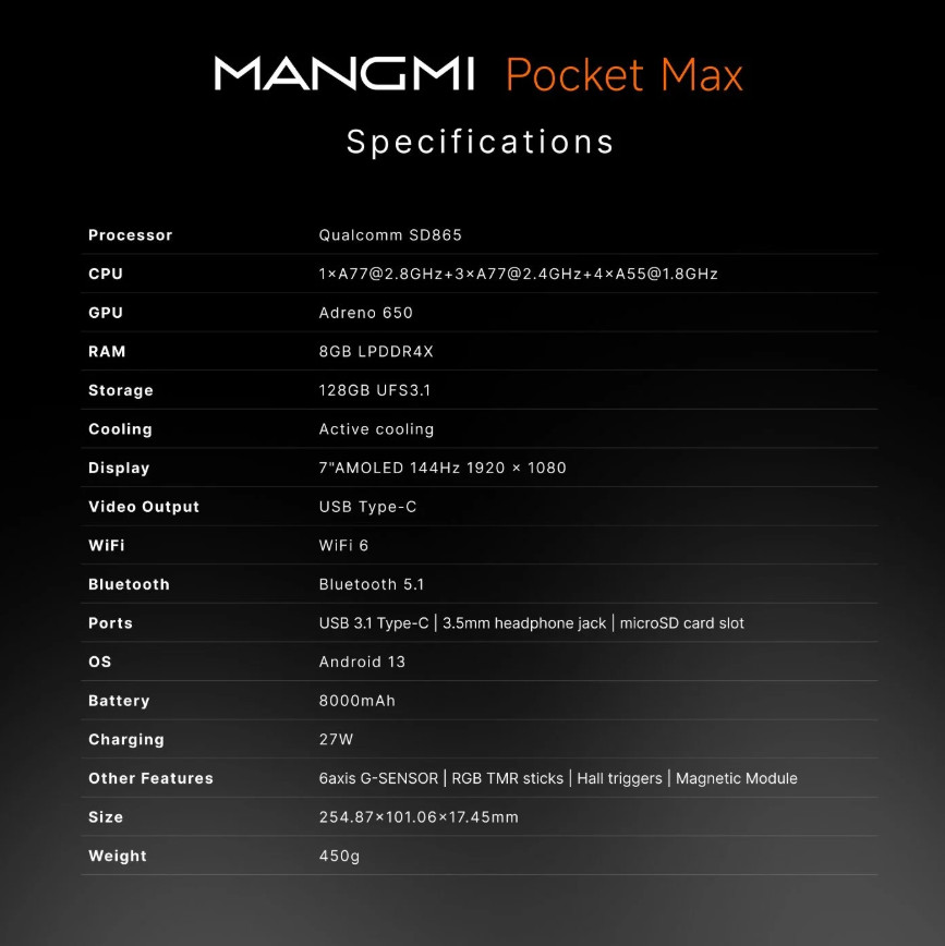 Після серії тизерів компанія Mangmi офіційно розкрила характеристики портативної ігрової консолі Pocket Max. Деталями виробник поділився у своєму акаунті в X, і пристрій виглядає значно серйознішим, ніж може здатися з першого погляду.